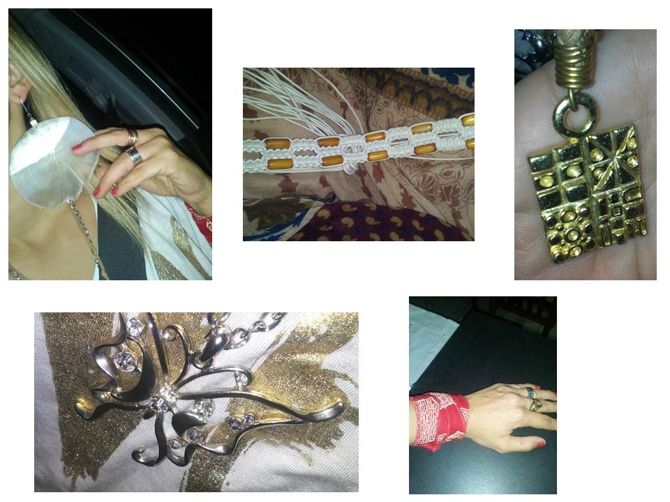 Para os acessórios: brincos três ouros, fechei o "bolerinho" com um broche, pulseira com tons meio alaranjados, bolsa caramelo e marrom.